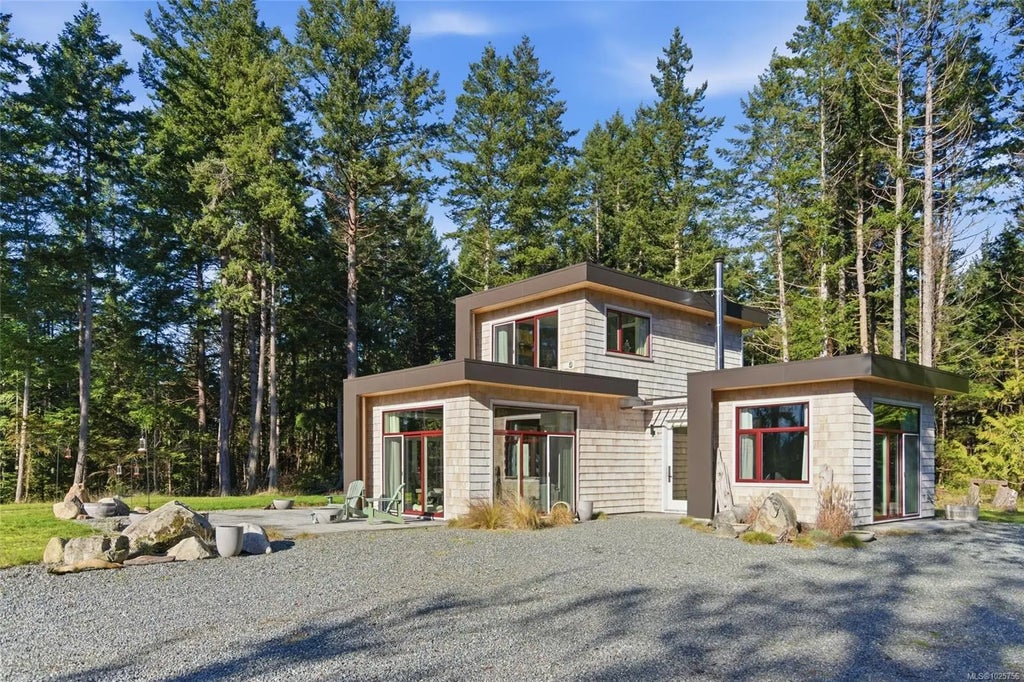 Tucked into the peaceful landscape of Gabriola’s sunny south end, this beautifully designed architectural 2-bedroom, 2-bathroom home offers a blend of modern comfort and relaxed island living. Thoughtfully positioned to capture natural light, the home features polished concrete floors with in-floor heating, 10-foot ceilings, and expansive walls of glass creating a bright, welcoming space year-round. Set on nearly 6 acres, the property offers privacy, open sunny areas, and gentle ocean views overlooking Degnen Bay. A large 1000+ sq ft workshop provides excellent flexibility for hobbies, projects, or storage, while a detached 9x14 studio is ideal for a home office, art space, or yoga/wellness room.Located near Drumbeg Provincial Park, scenic trails, and two marinas, this property captures the essence of Gulf Island living — peaceful, private, and connected to nature. Full information package, floor plans and virtual tour are available. All information to be verified if deemed important.